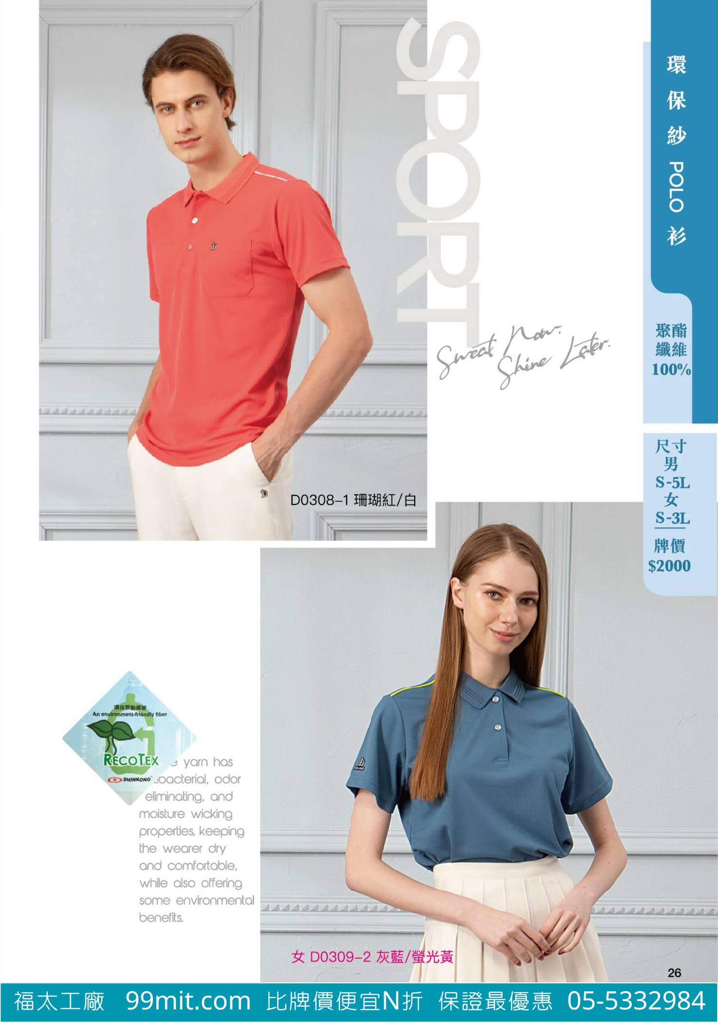 *Coolmax Eco布料:結合高效吸濕排汗與環保製程,適合運動與日常穿著。